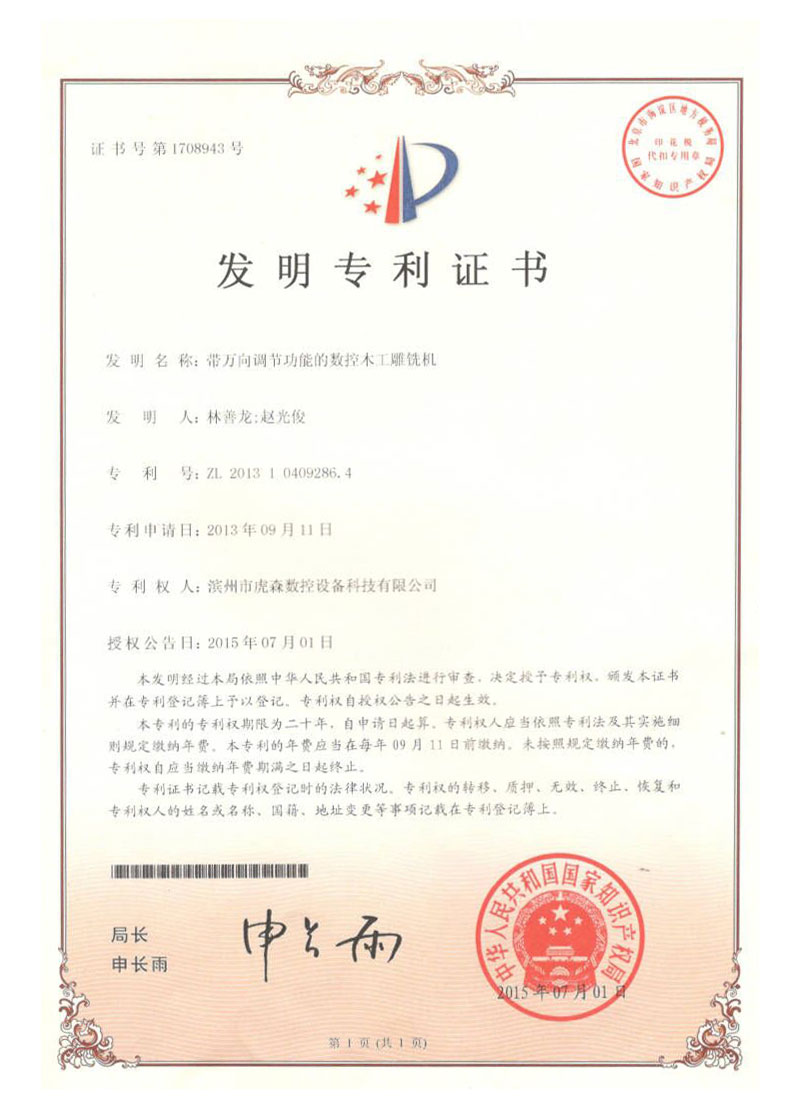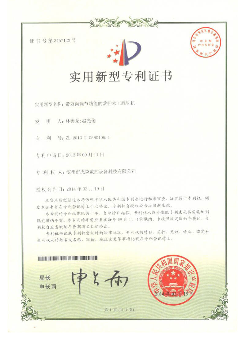 帶萬向調節(jié)功能的數控木工雕銑機