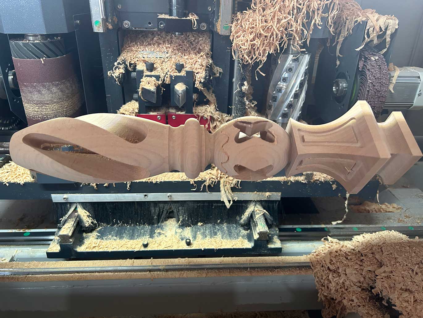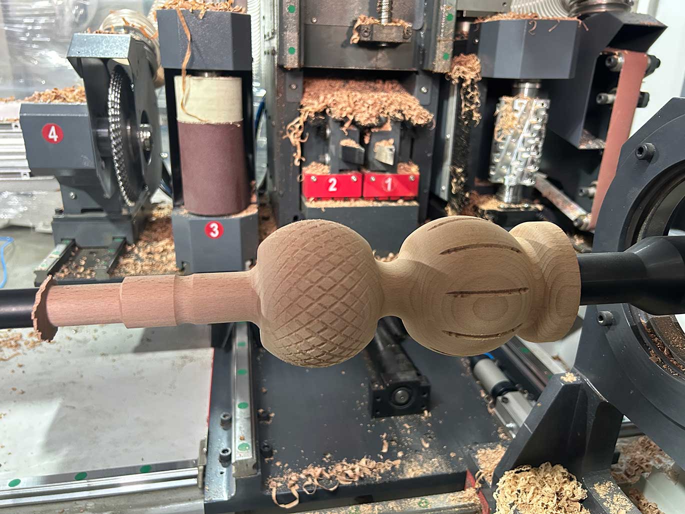 5軸數(shù)控車床一共14工序, 自動(dòng)上下料,有RTCP 功能??梢攒嚕?,鋸,鉆孔,拉槽,鏤空,自動(dòng)砂光, 多功能一體機(jī)。